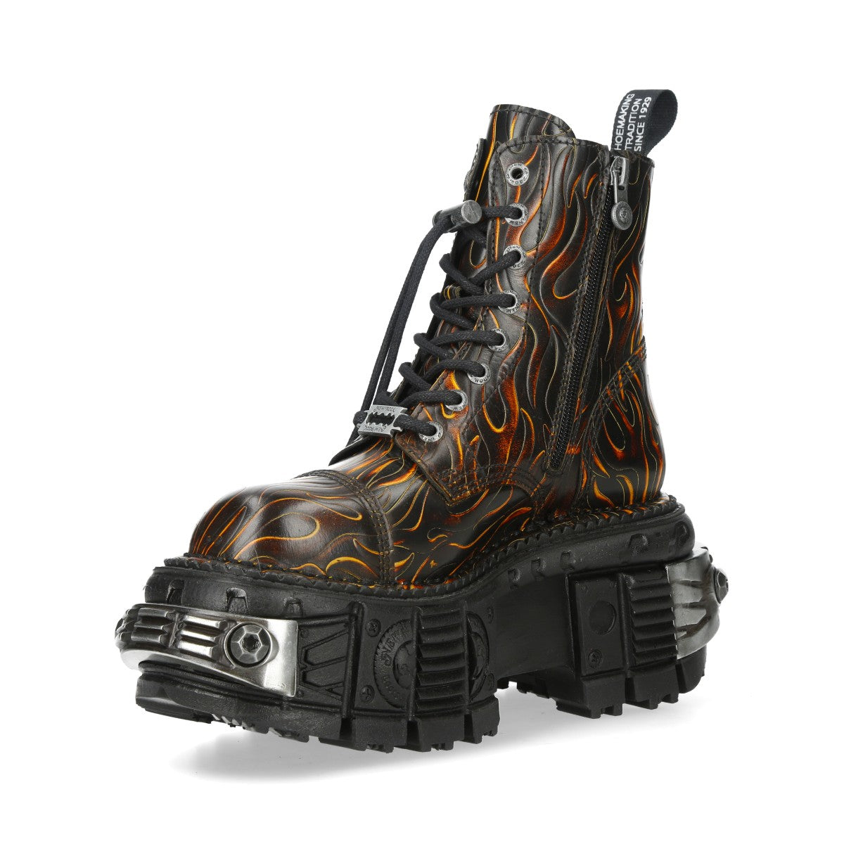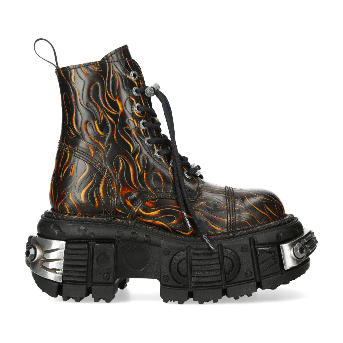 The Ankle Boot M-MILI083CCT-C100 of METALLIC COLLECTION. Genuine Leather. Fashion design with the Military style and Newrock original ADN. New Punk and rock Design with the power and finishing of a original Newrock.. The popular and Original Newrock design goth and metallic togeter in this style.. Fashion and Rock Design reloaded with the most extreme original newrock power.
