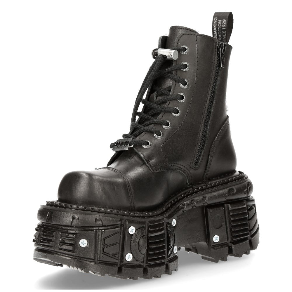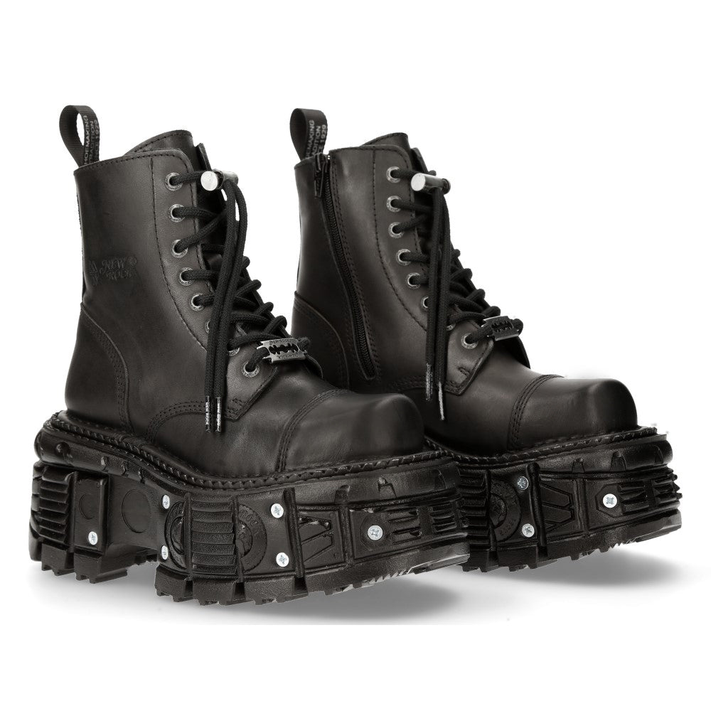 The Ankle Boot M-MILI083CCT-C8 of METALLIC COLLECTION. Genuine Leather. Fashion design with the Military style and Newrock original ADN. New Punk and rock Design with the power and finishing of a original Newrock.. The popular and Original Newrock design goth and metallic togeter in this style.. Fashion and Rock Design reloaded with the most extreme original newrock power.