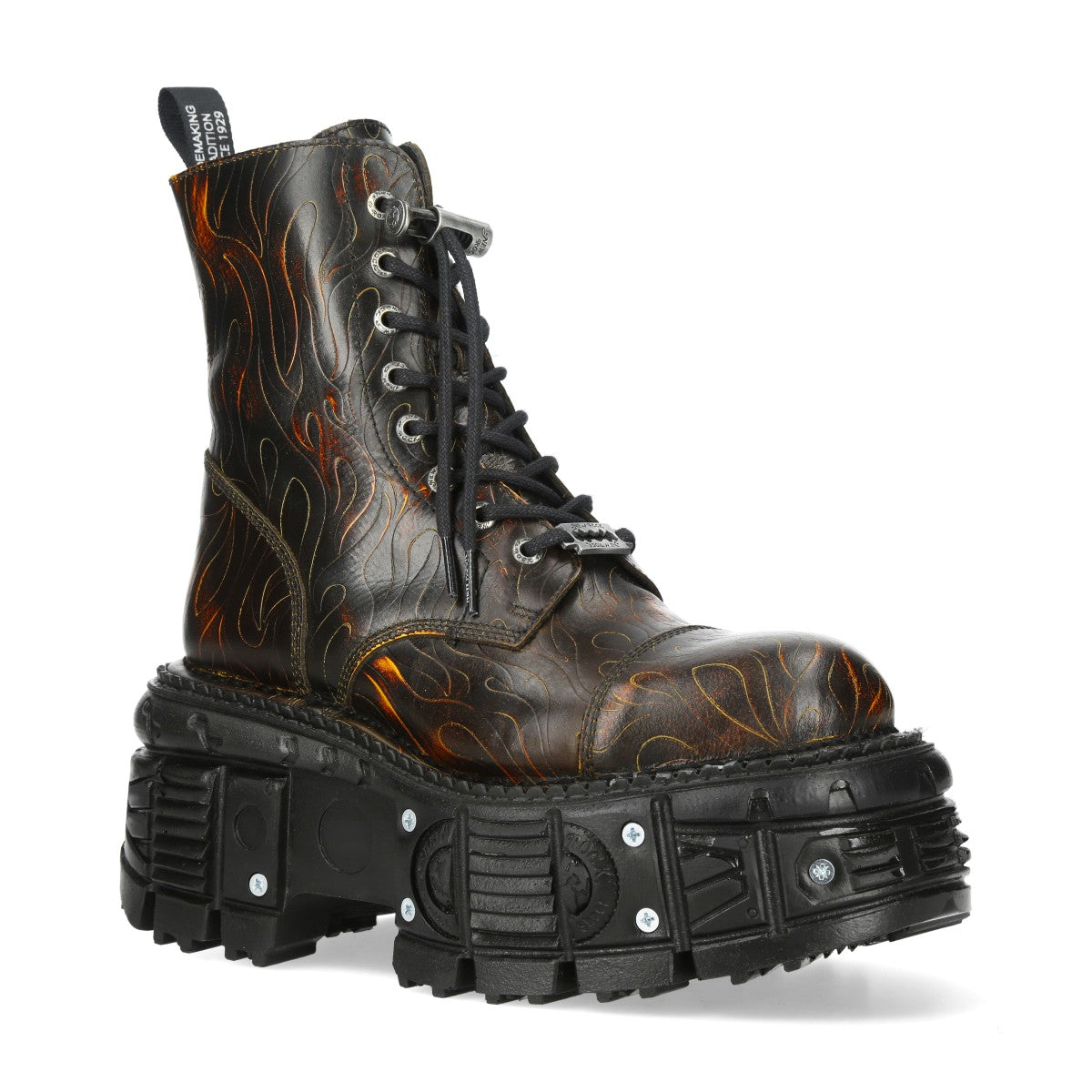 The Ankle Boot M-MILI083CCT-C96 of METALLIC COLLECTION. Genuine Leather. Fashion design with the Military style and Newrock original ADN. New Punk and rock Design with the power and finishing of a original Newrock.. The popular and Original Newrock design goth and metallic togeter in this style.. Fashion and Rock Design reloaded with the most extreme original newrock power.