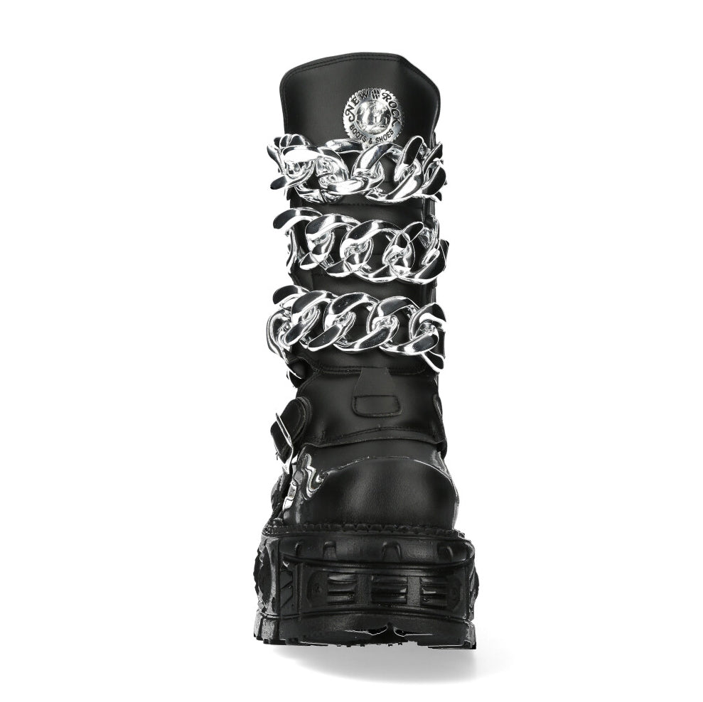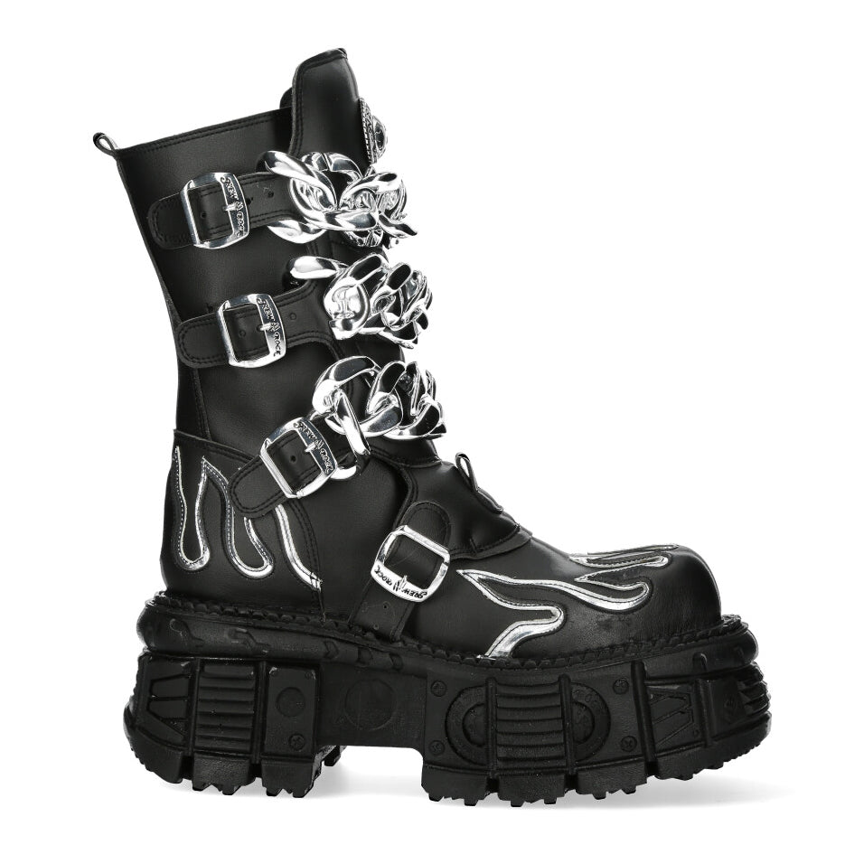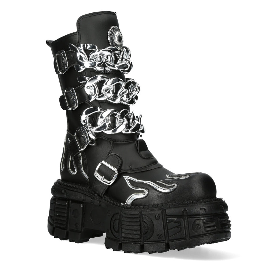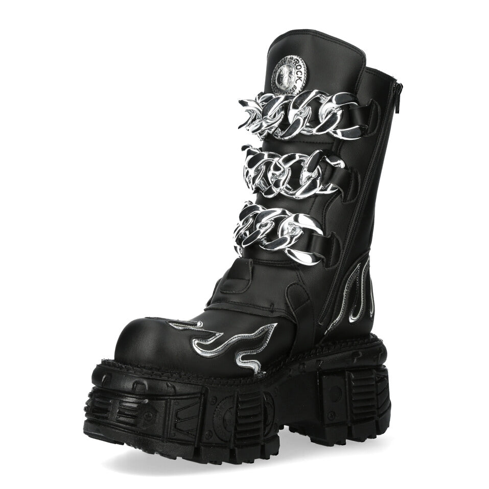 The Boot M-MET032-V3 of METALLIC COLLECTION. High quality synthetic material. Original design for demonian peoble. New Punk and rock Design with the power and finishing of a original Newrock.. The popular and Original Newrock design goth and metallic togeter in this style.