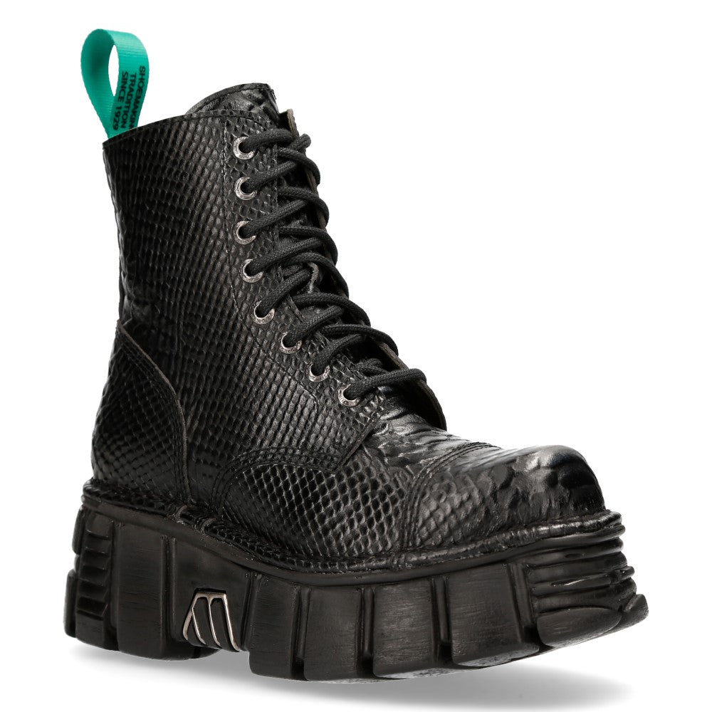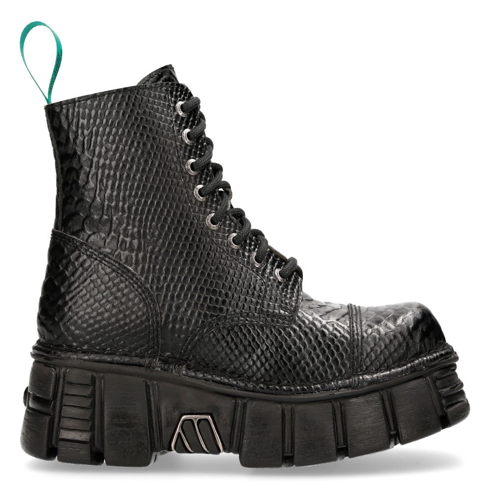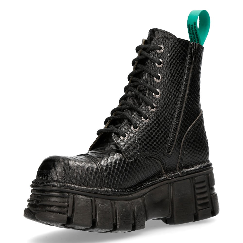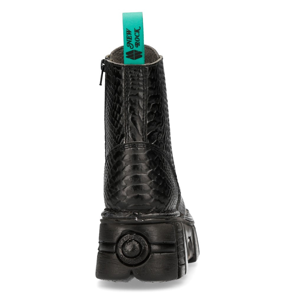 The Ankle Boot M-MILI083C-V11 of METALLIC COLLECTION. High quality sintetic material. Fashion design with the Military style and Newrock original ADN. New Punk and rock Design with the power and finishing of a original Newrock.. The popular and Original Newrock design goth and metallic togeter in this style.. Fashion and Rock Design reloaded with the most extreme original newrock power.