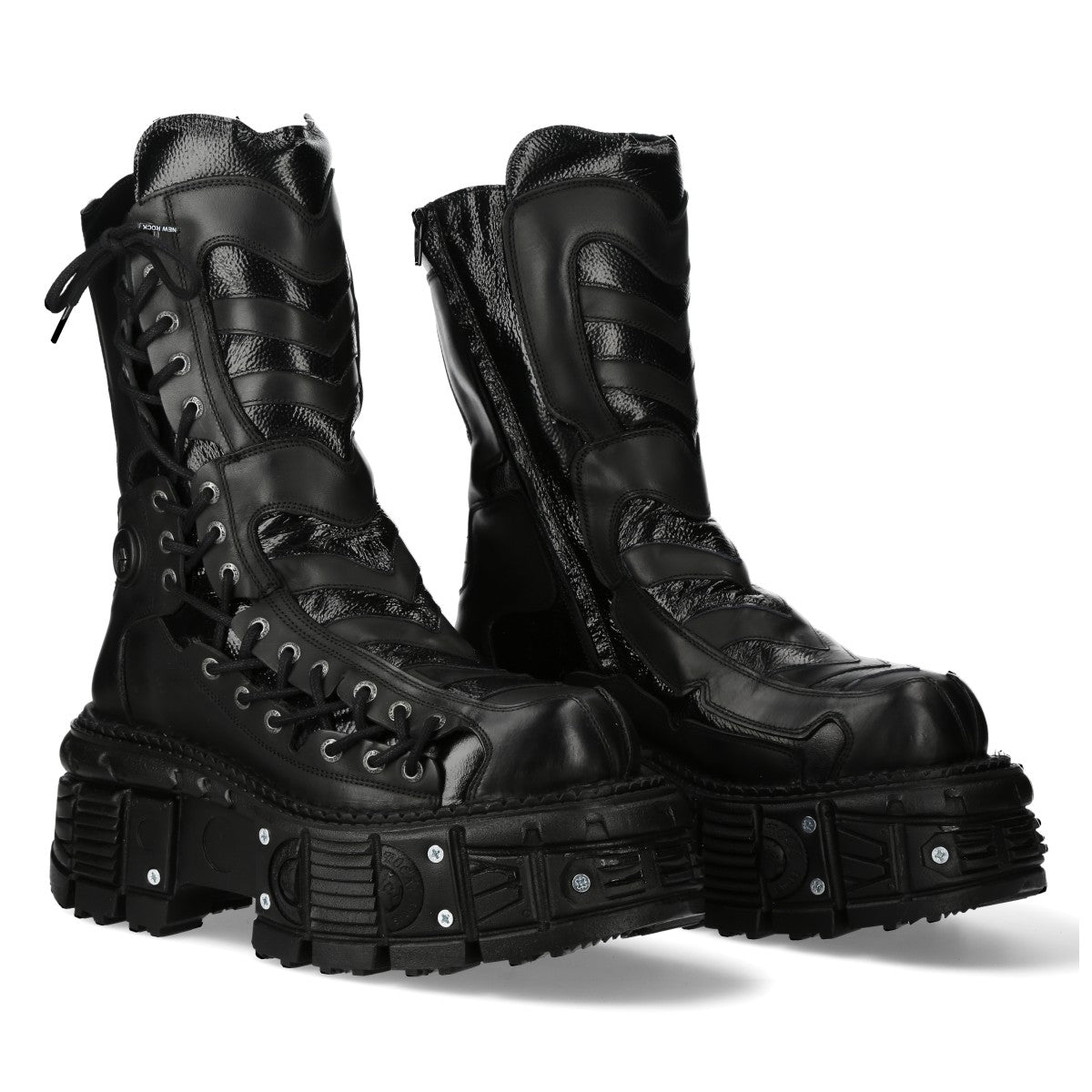 The Boot M-180-C4 of METALLIC COLLECTION. Genuine Leather. New Punk and rock Design with the power and finishing of a original Newrock.. The popular and Original Newrock design goth and metallic togeter in this style.. Fashion and Rock Design reloaded with the most extreme original newrock power.